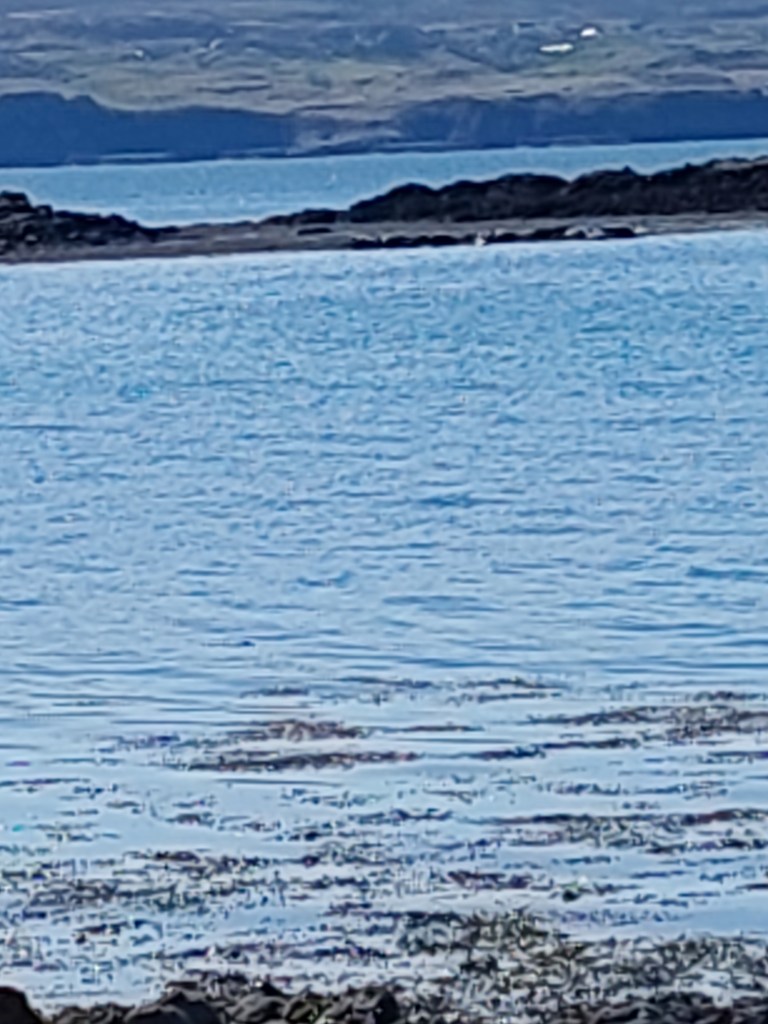 We have had a beautiful spell of sunny days this week, wonderful for April. The scene today offered a blue sky and a sea as blue and turquoise as if you were in the Indian Ocean. People who think it’s all shades of grey and green in the Hebrides haven’t visited; one meets with extraordinarily vivid colours in this landscape. And the water as clear as glass: one could see from the shore individual rocks on the sea bottom 20 or 30 feet out, and precisely where the weed grew and where not.
